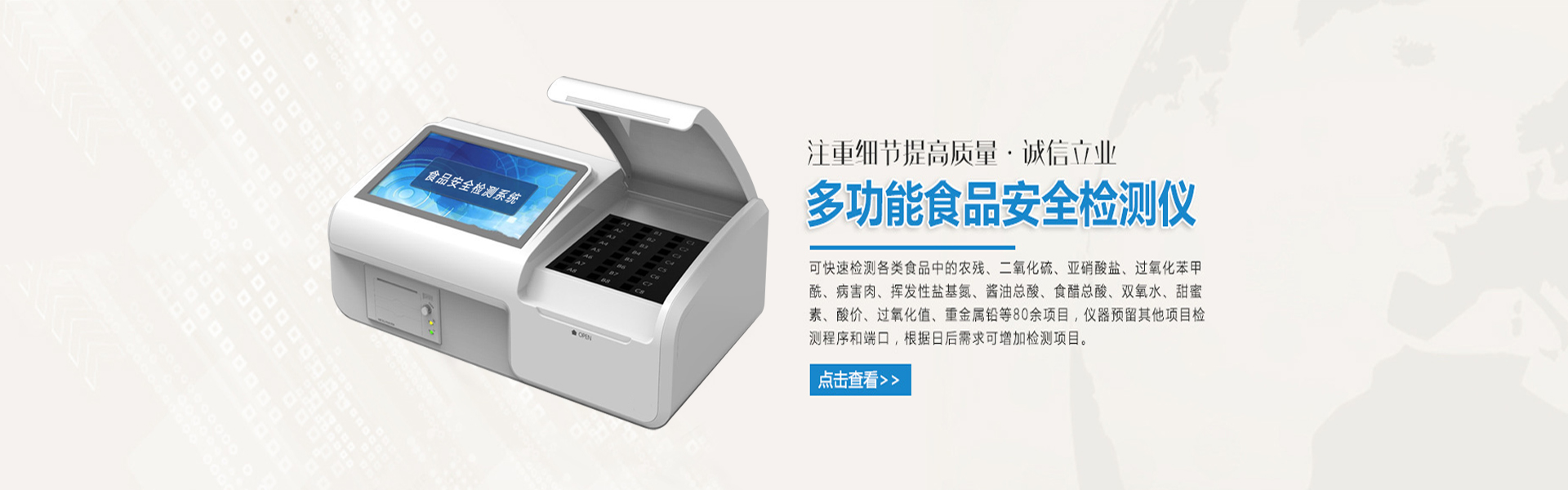 山東九如儀器有限公司專注于研發(fā),生產(chǎn):動物疫病/獸藥殘留/食品安全/微生物致病菌檢測箱;農(nóng)藥殘留快速檢測儀,農(nóng)藥殘留速測儀,食品藥品現(xiàn)場勘驗箱;近紅外谷物/食品藥品膠體金分析儀/食品安全快檢箱;微生物檢測箱,食品安全采樣箱,水質(zhì)速測箱,手持式食用油品質(zhì)檢測儀;農(nóng)藥殘留/二氧化硫/ATP熒光/吊白塊/多參數(shù)水質(zhì)/病害肉/甲醛/亞硝酸鹽/食用油品質(zhì)/食用油過氧化值/食用油酸價/食用油品質(zhì)/雞蛋/金標(biāo)/真菌毒素/獸藥殘留/抗生素殘留/重金屬/高智能食品安全/食品安全綜合/農(nóng)藥殘留/多功能食品安全檢測儀等安全檢測設(shè)備,信息傳輸設(shè)備,生物操作設(shè)備,環(huán)保設(shè)備,農(nóng)業(yè)植保設(shè)備,作物品質(zhì)設(shè)備的高科技企業(yè)!